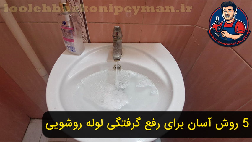 برای رفع گرفتگی روشویی، ابتدا با تلمبه دستی چند مرحله فشار دهید. اگر مشکل حل نشد، ترکیب جوش شیرین و سرکه داخل لوله بریزید و ۳۰ دقیقه صبر کنید، سپس آب جوش بریزید. در صورت گرفتگی شدید، از فنر برقی کمک بگیرید.